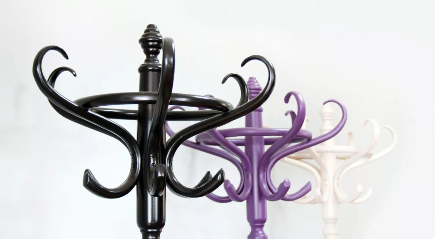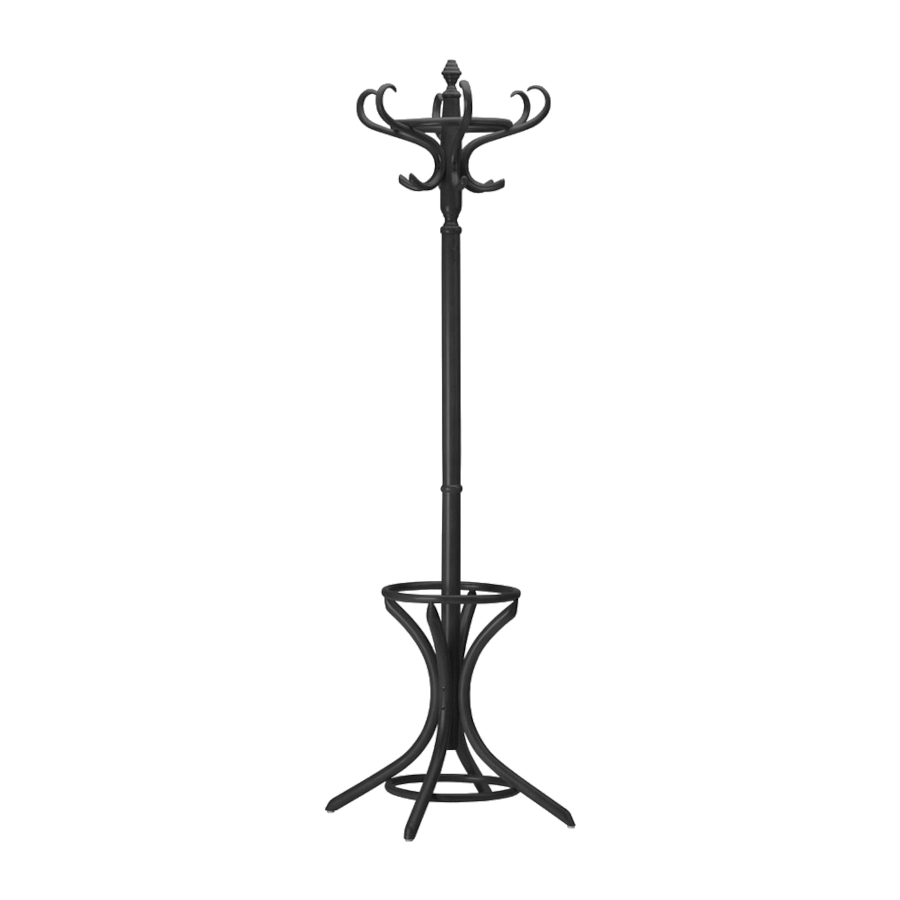 1042 är en klädhängare med paraplyställ som är tillverkad med böjträteknik och har en klassisk design som passar bra i olika miljöer. Det finns flera krokar på klädhängaren som kan användas för att hänga upp ytterkläder, väskor och hattar. Den här klädhängaren är även extra praktisk då det finns ställ för paraplyn.