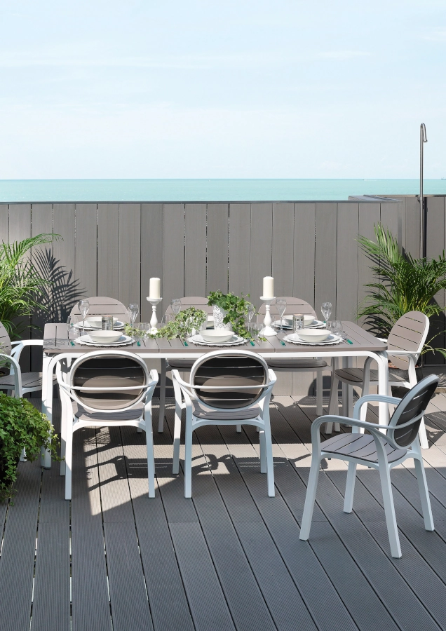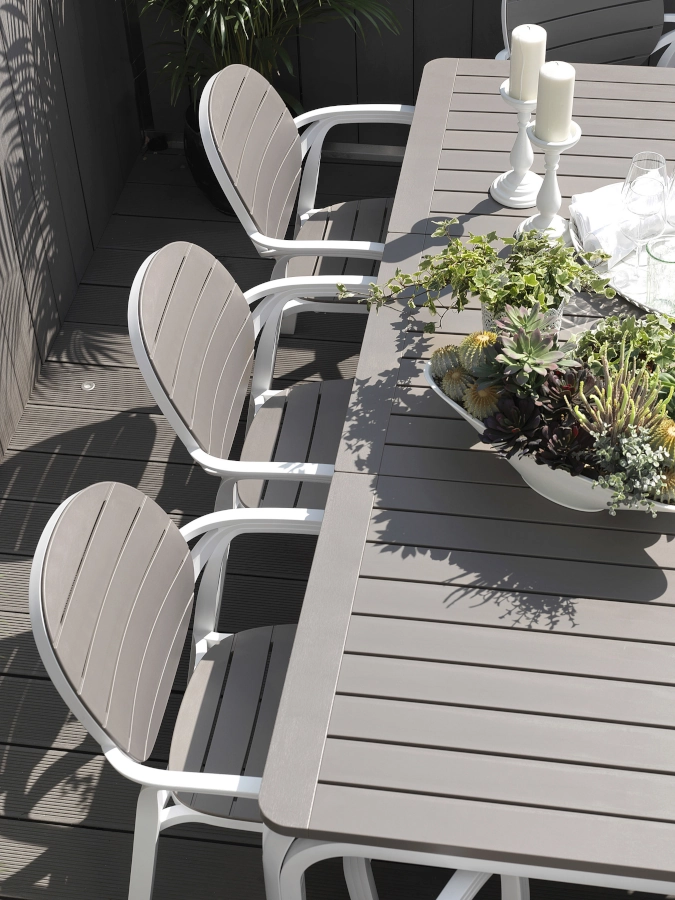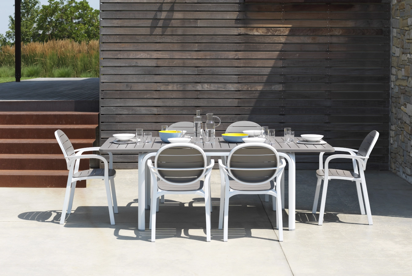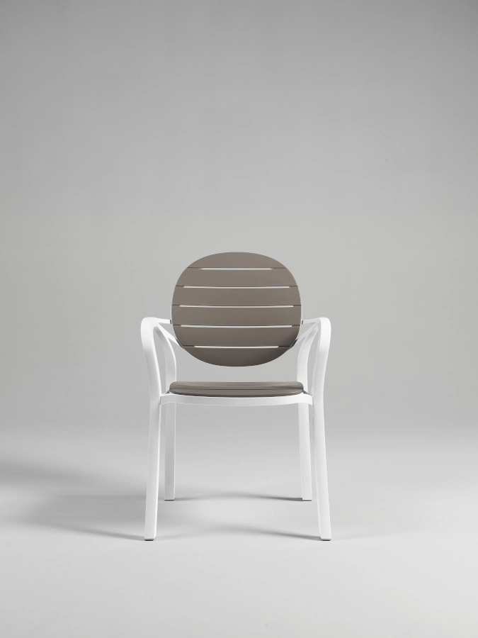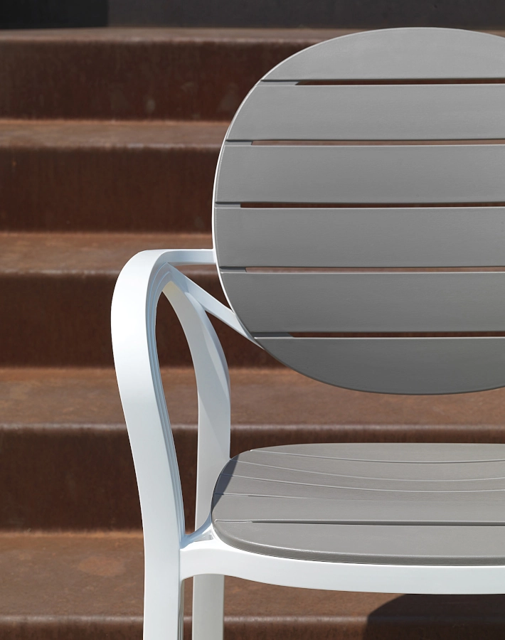 Palma karmstol som är tillverkad av polypropylen och har breda ribbade lameller på sitsen och ryggen. Stolen är lika intressant för sig i olika miljöer men även intressant att använda ihop med stolen Erica.