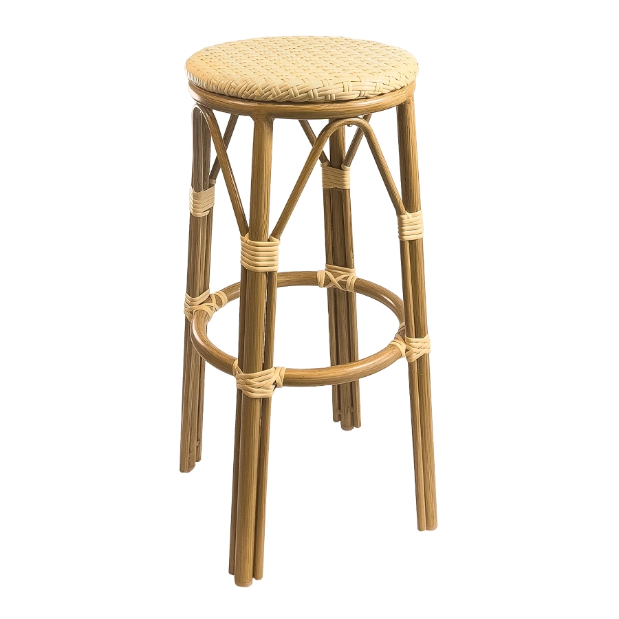 Paris barpall med klassisk bistro stil som har flätning av fiberrotting och som ingår i serien Paris. I serien Paris finns sittmöbler med olika utseenden där flätningen är av fiberrotting eller textilene och det skiljer i utseendet mellan textilene och fiberrotting.
