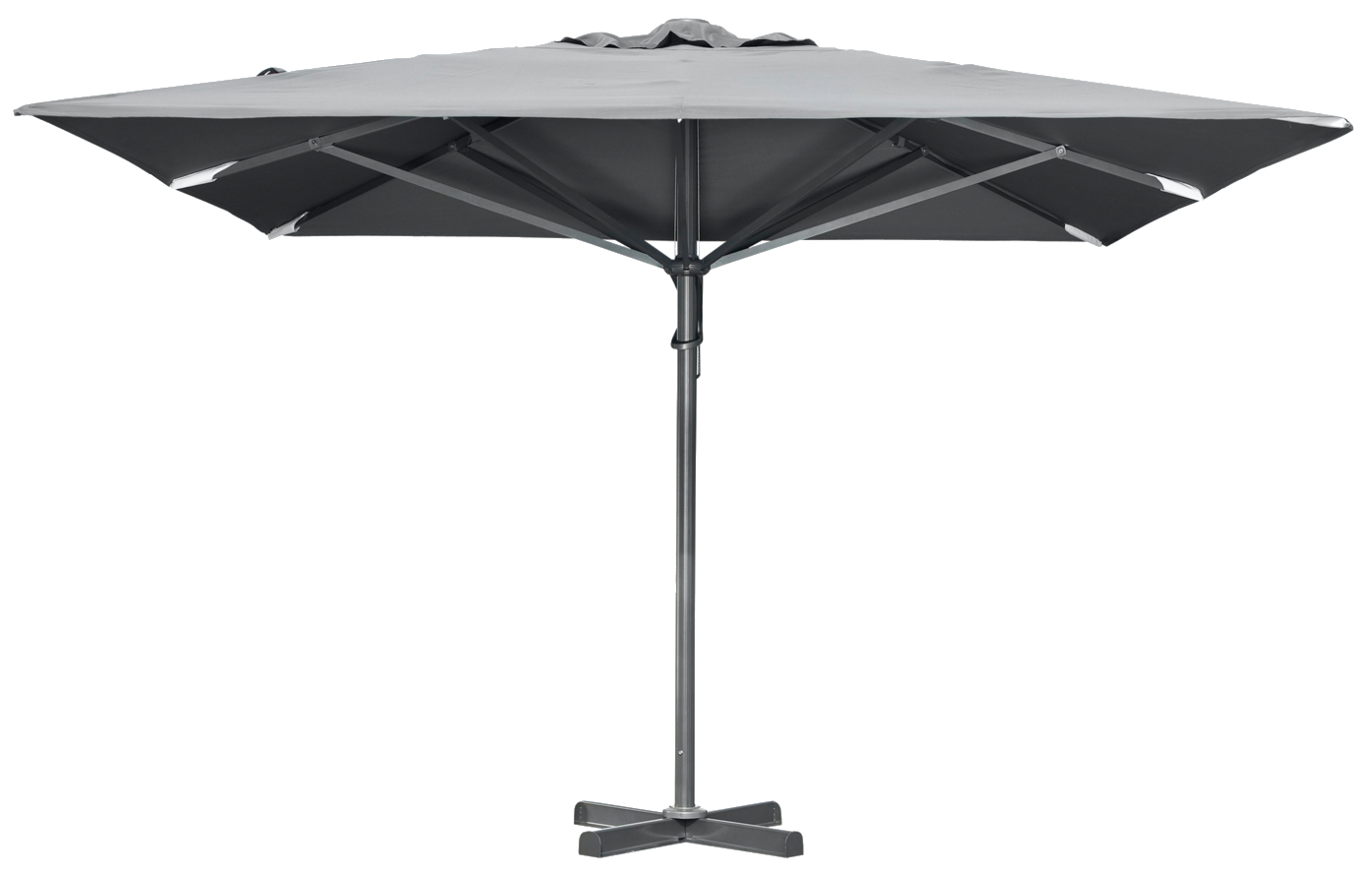 Ett större fyrkantigt parasoll som passar bra vid en uteservering hos ett cafe eller en restaurang men även intressant vid många fler utemiljöer.