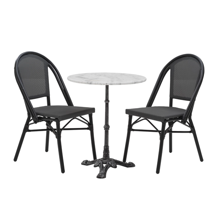 Sits och rygg är av tålig textilene som ger en modern tolkning av den klassiska parisiska bistrokänslan. Det är även stomme av aluminium som gör att stolen blir smidig att förflytta och hantera. Stolen är även praktisk då den är stapelbar vilket underlättar vid förvaring av flera stolar och som då tar mindre plats vid förvaring.