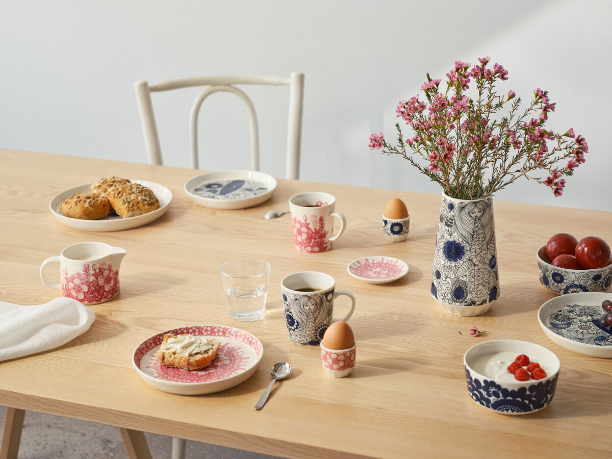 Pastoraali äggkopp med dekorativ dekor som ingår i serien Pastoraali som är skapad av Esteri Tomulas. "Pastoraali" är finska och kan översättas till "lantlig" på svenska.