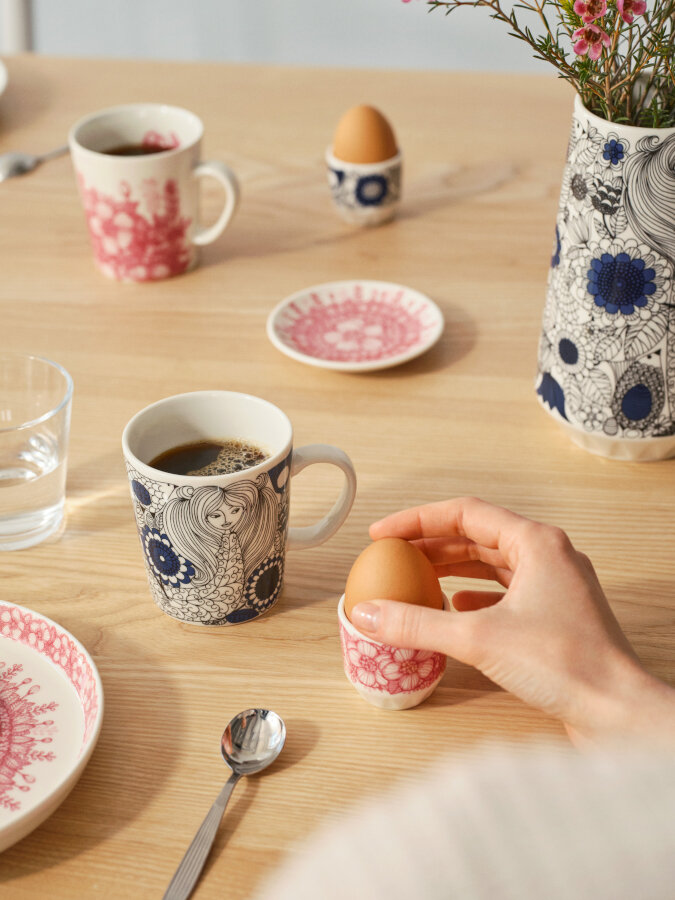 Pastoraali mugg som har en dekorativ dekor som ingår i serien Pastoraali som är skapad av Esteri Tomulas. "Pastoraali" är finska och kan översättas till "lantlig" på svenska.