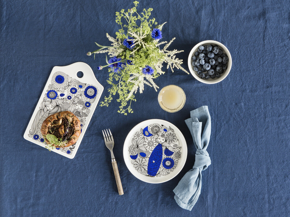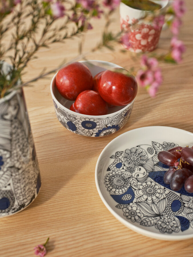 Pastoraali tallrik som har en dekorativ dekor som ingår i serien Pastoraali som är skapad av Esteri Tomulas. "Pastoraali" är finska och kan översättas till "lantlig" på svenska.