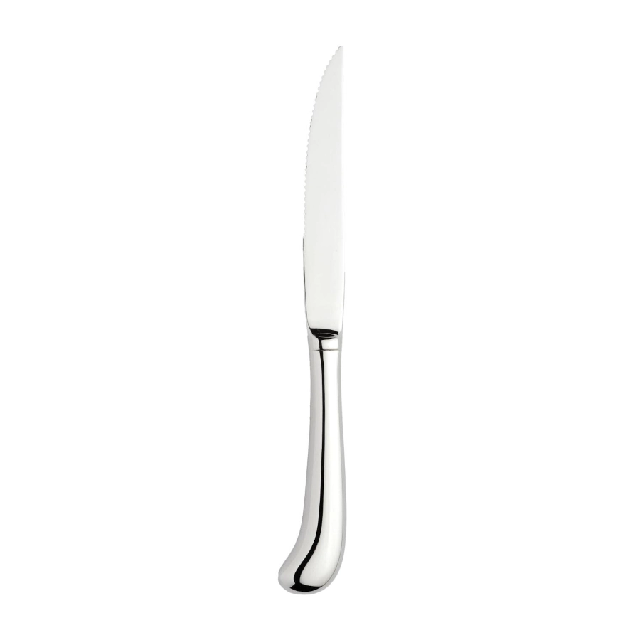 Pistol stekkniv i rostfritt stål som har en elegant design med böjda linjer som passar bra vid olika dukningar. En stekkniv som kan användas ihop med olika gafflar som även passar lika bra i caféer, restauranger som i ett hem.