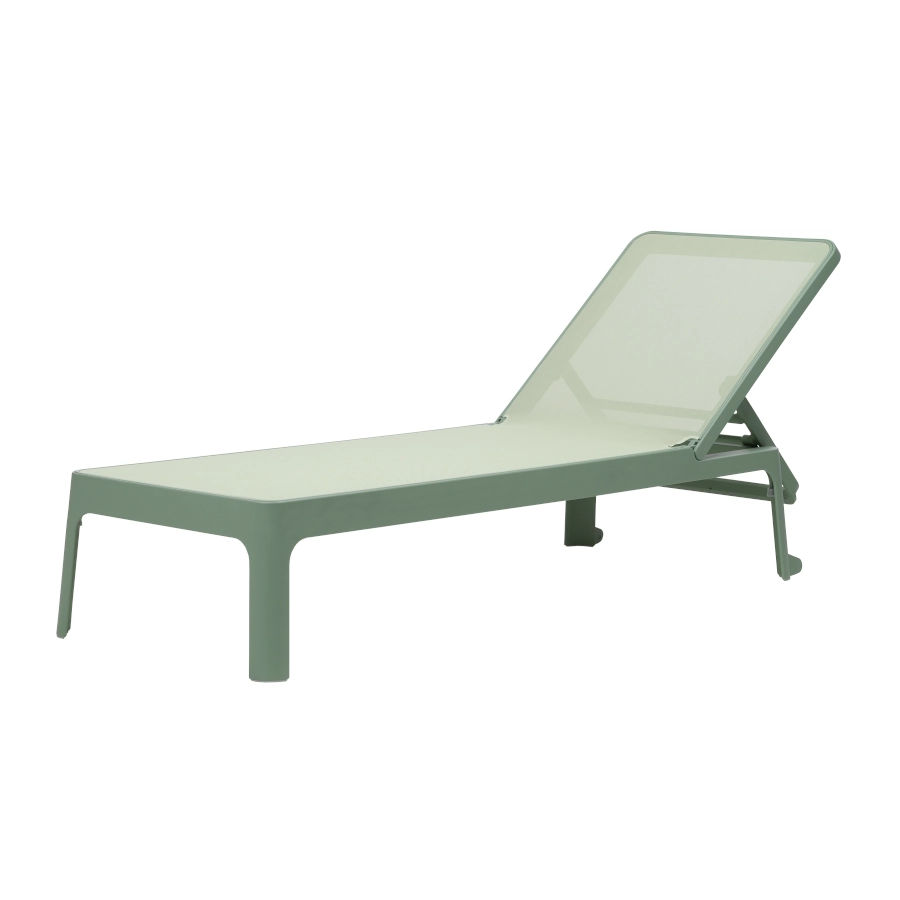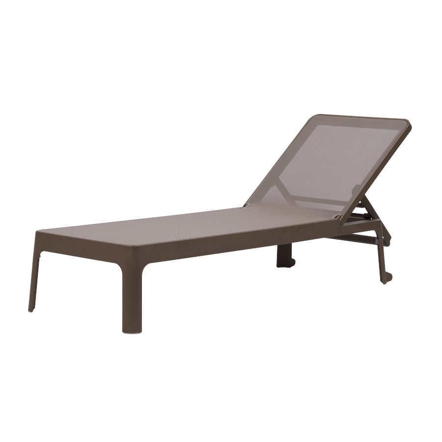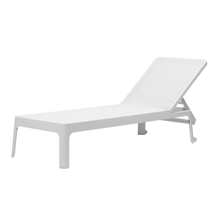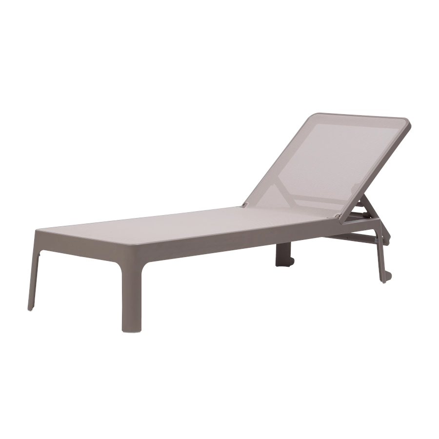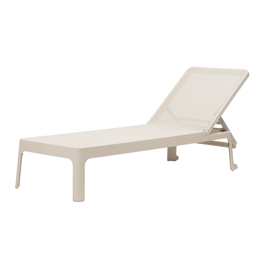 Plano solsäng av polypropylen med syntetväv som har stilren design och ställbar rygg i olika lägen som passar bra i olika miljöer.