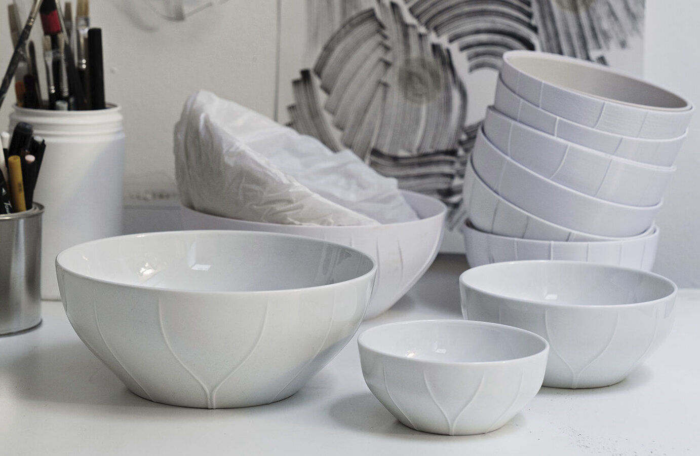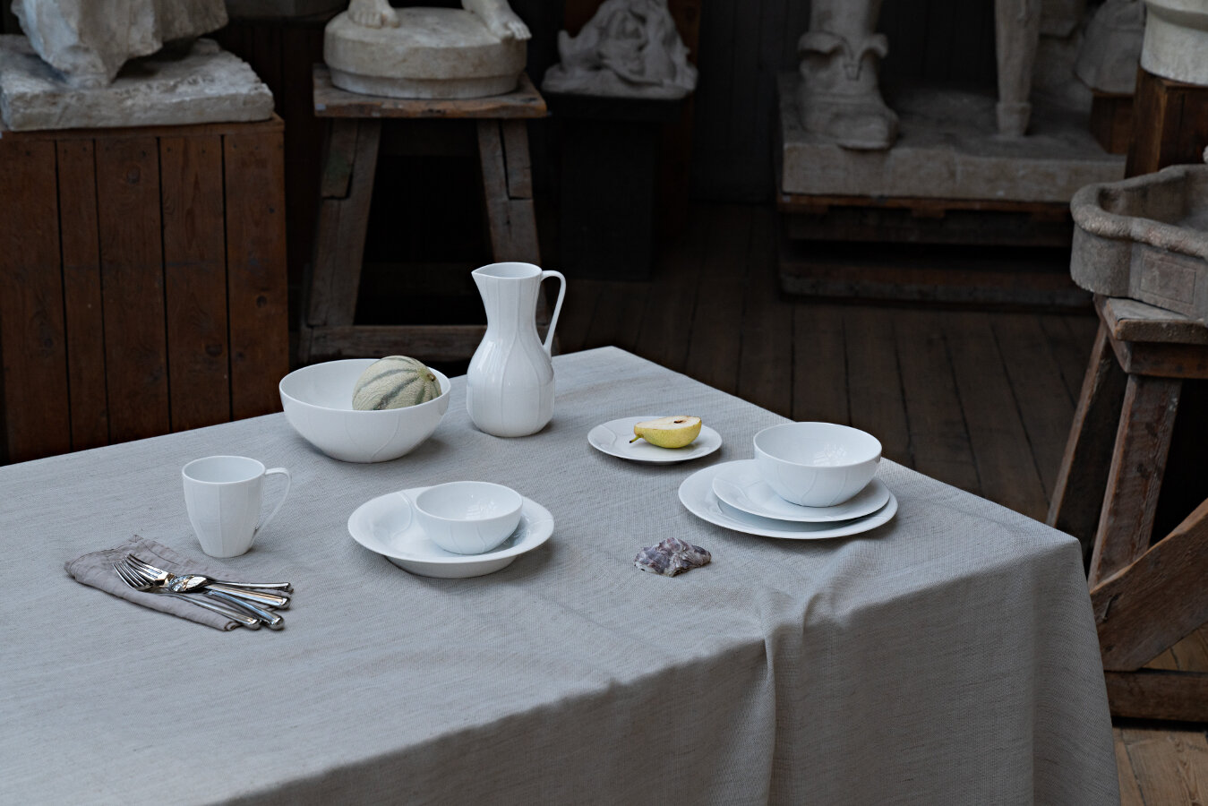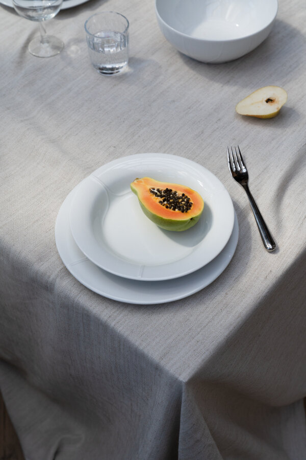 Serien Pli Blanc är för dig som vet att mode och stil har en självklar plats på bordet. En serie som är skapad av designerduon Färg & Blance och inspirerat av modevärldens eleganta textilier och tidlöst skrädderi. I mötet med det hårda porslinet har tygernas sömmar förvandlats till vackert formade veck. Pli Blanc är ett vitt vardagsporslin för festliga tillfällen och skräddarsytt för nästa oförglömliga middag.