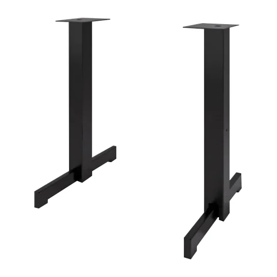 Bordsstativ i serien har en patenterad pendeldesign som består av 2 stålprofiler och en bult som stabiliserar sig automatiskt på underlaget. Det här bordsstativet har en höjd som passar bra till vanliga stolar och kan användas till en rektangulär bordsskiva. Det finns även plasttassar under bordsstativet som skyddar golvet.