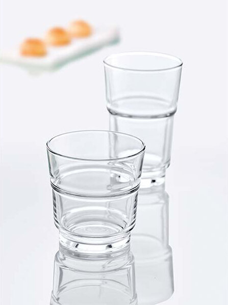 Rocky Stack är ett dricksglas som är tillverkat av härdat glas och som rymmer 28 cl. Ett praktiskt glas då det är stapelbart som gör att man kan förvara flera glas på liten yta. Glas som är extra bra i en restaurangmiljö då det är av härdat glas vilket gör att det är ett tåligare glas.