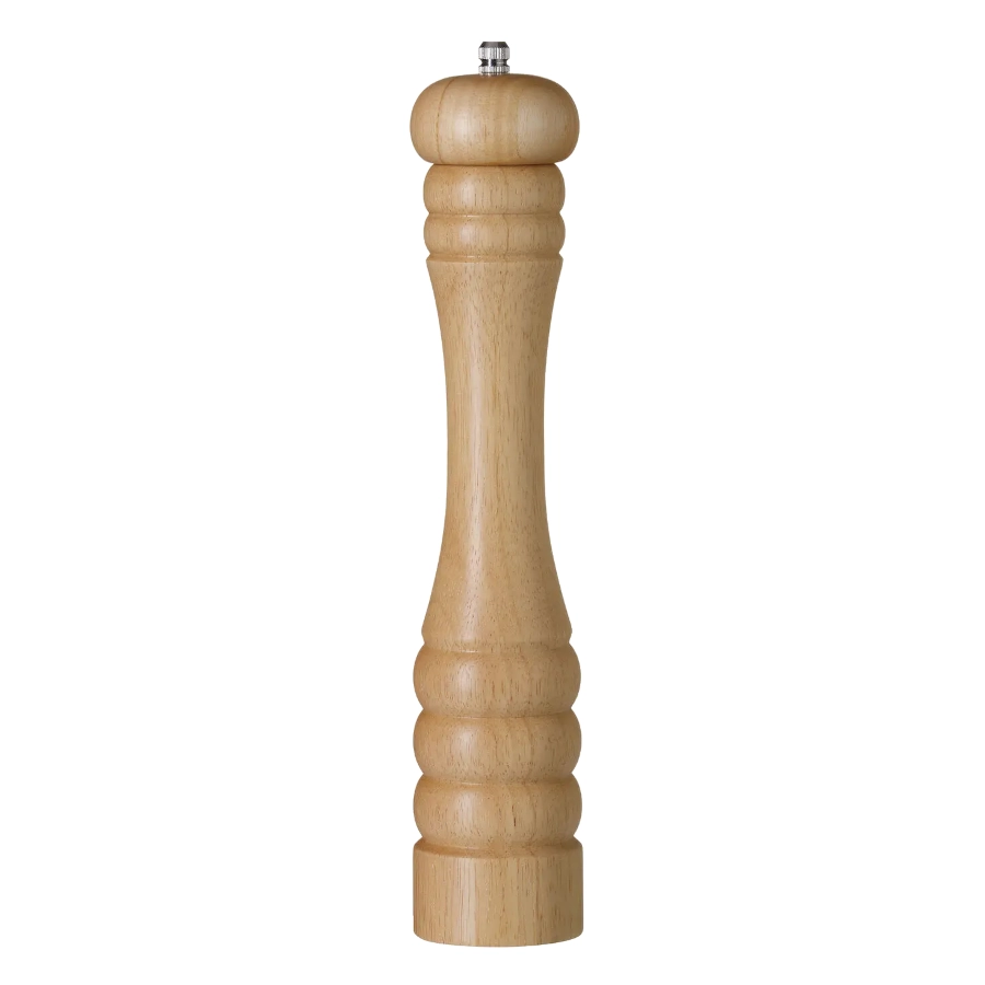 Saltkvarn med knopp märkt S som är tillverkad av gummiträ och är i ljus trä. Kvarnen finns i olika storlekar och har en keramisk malningsmekanism som säkerställer jämn malning av saltkristaller och det går att justera med knoppen. Det är en saltkvarn som har en ergonomisk form men även är lätt och tålig.