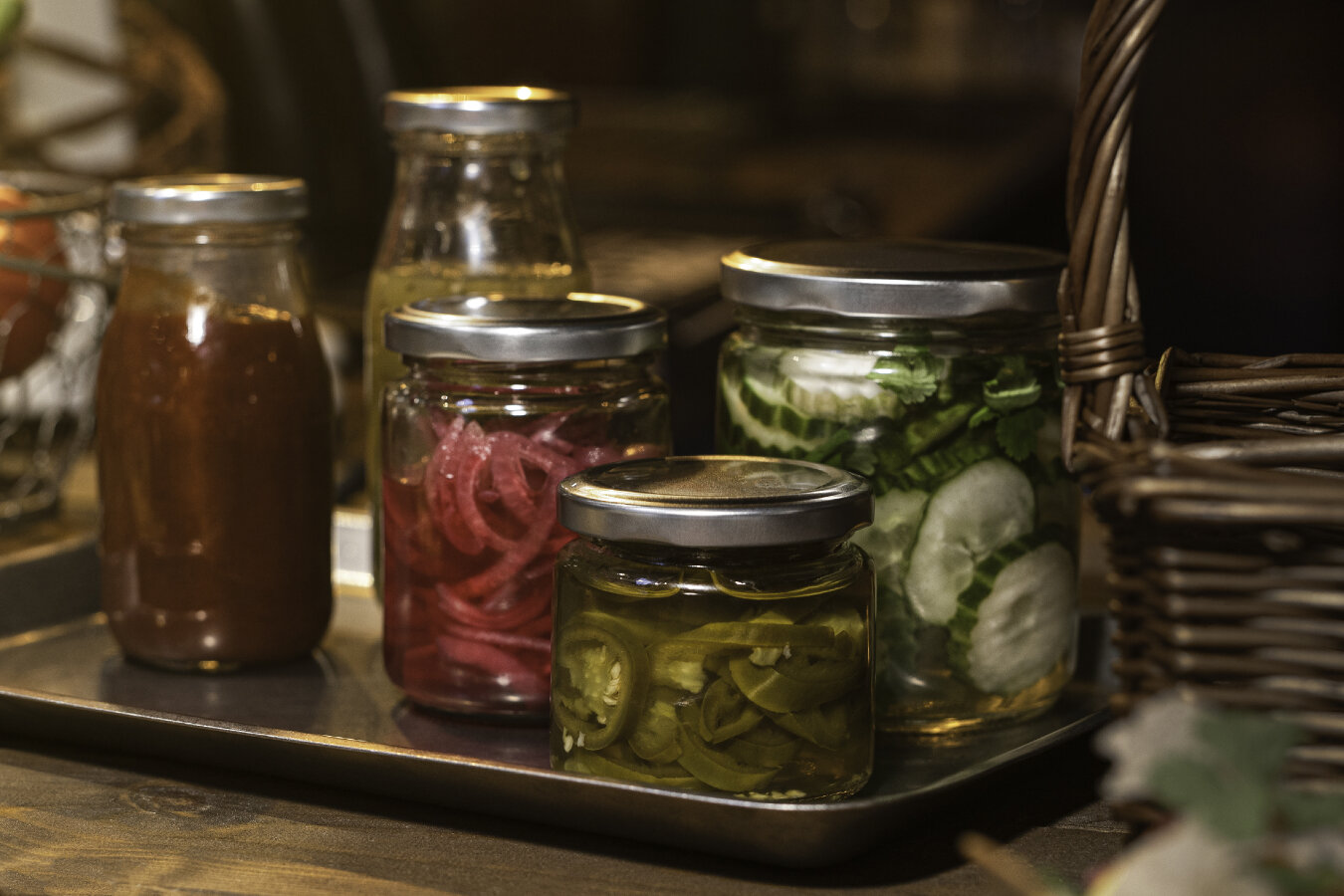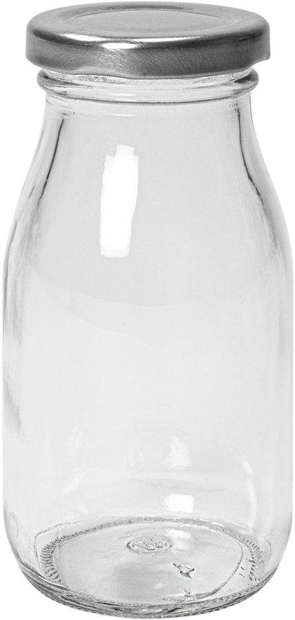 Serveringsflaska av glas med skruvlock av metall som finns i olika storlekar. Flaskor som ingår i en serie där flera olika utföranden finns. Glasflaskor som kan användas vid både servering som förvaring och till drycker, såser eller dressingar.