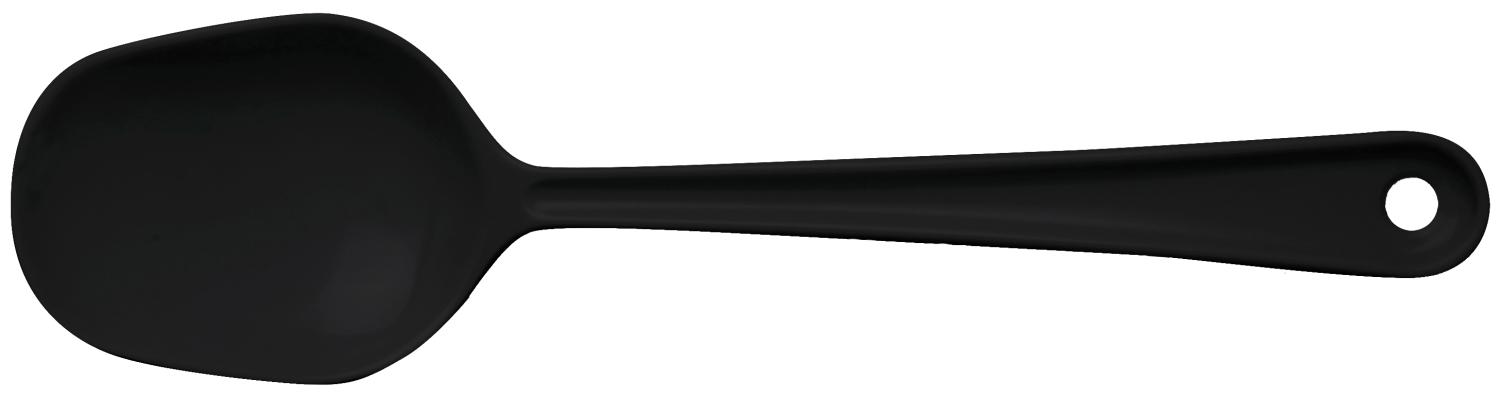 Serveringssked som är tillverkad av melamin i svart färg. En serveringssked som ingår i en serie där olika storlekar och färger finns. Serveringssked som har ett praktiskt hål för enkel upphängning.