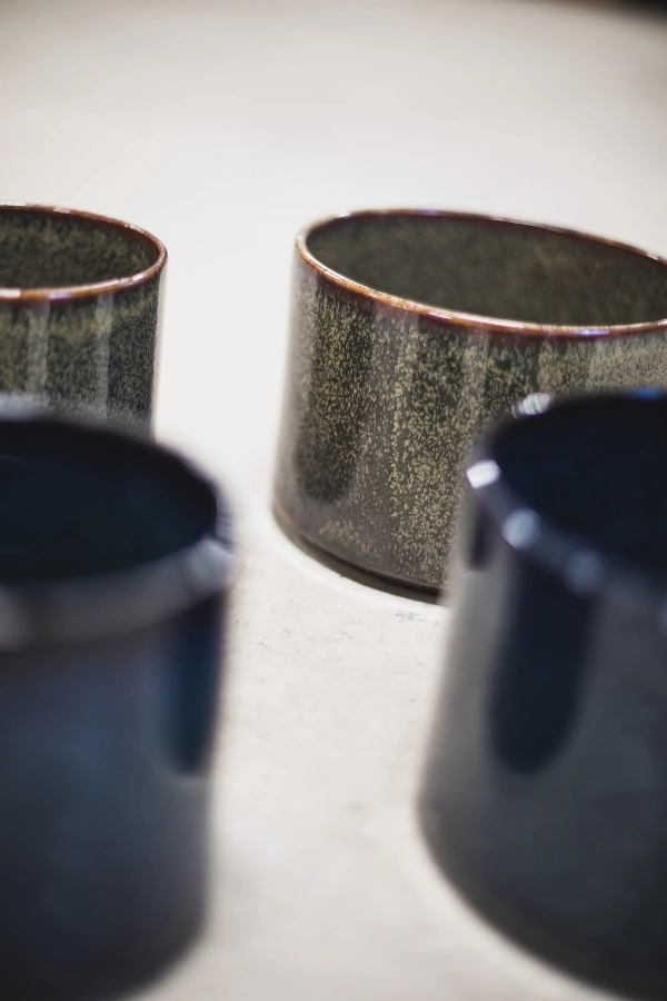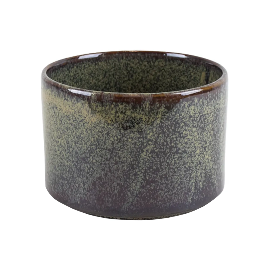 Skål av stengods med cylinderform som passar bra vid olika bordsserveringar men även intressanta vid olika bufféer. Skålarna ingår även i en serie som har en keramisk glasering och där utseendet kan variera vilket gör varje del i serien unik och i serien finns flera delar.