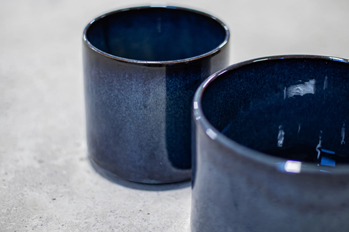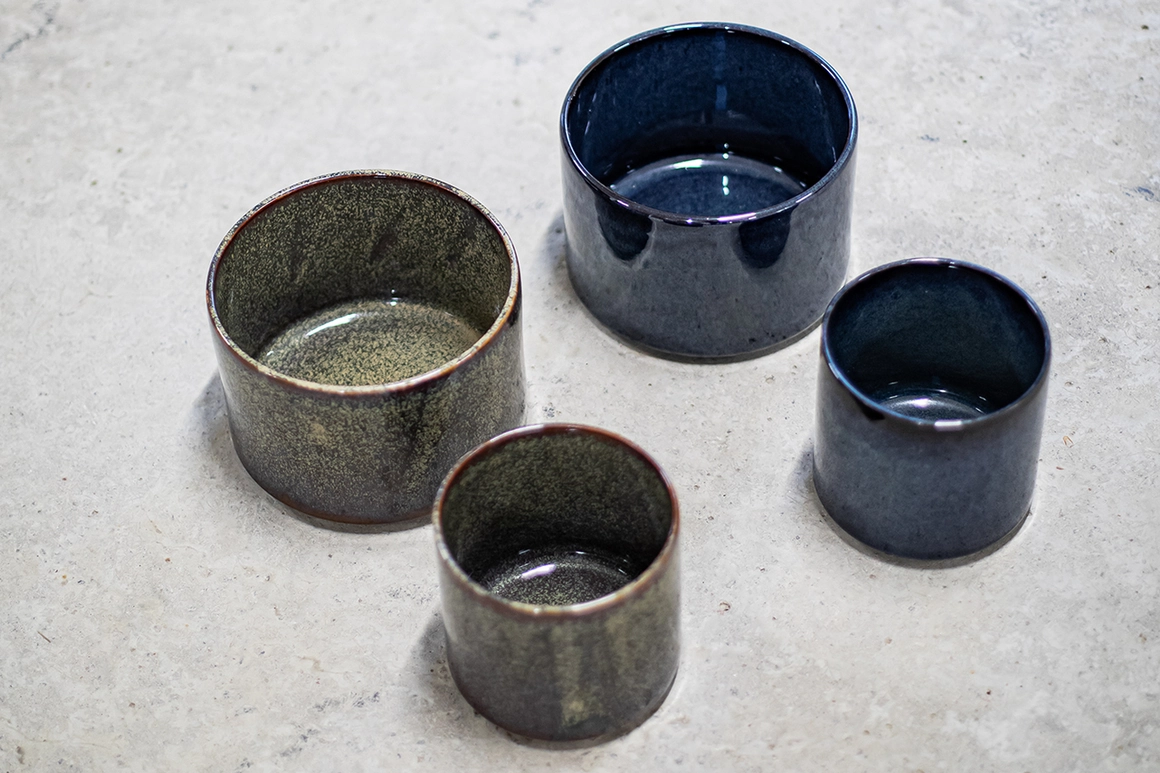 Skål av stengods med cylinderform som finns i olika utföranden och kan användas vid bordsservering men även intressanta vid olika bufféer.