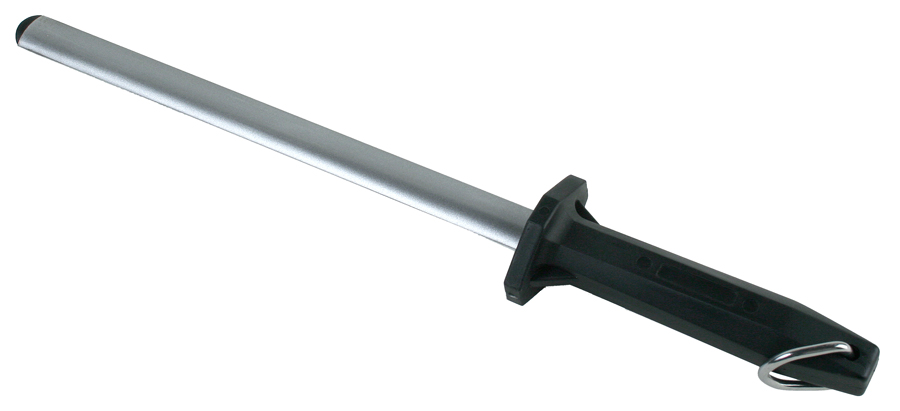 Skärpstål som är ovalt och tillverkad av stål med diamant som har ett kraftigt handtag. Skärpstål med en ögla i handtaget så man enkelt kan hänga upp skärpstålet.
