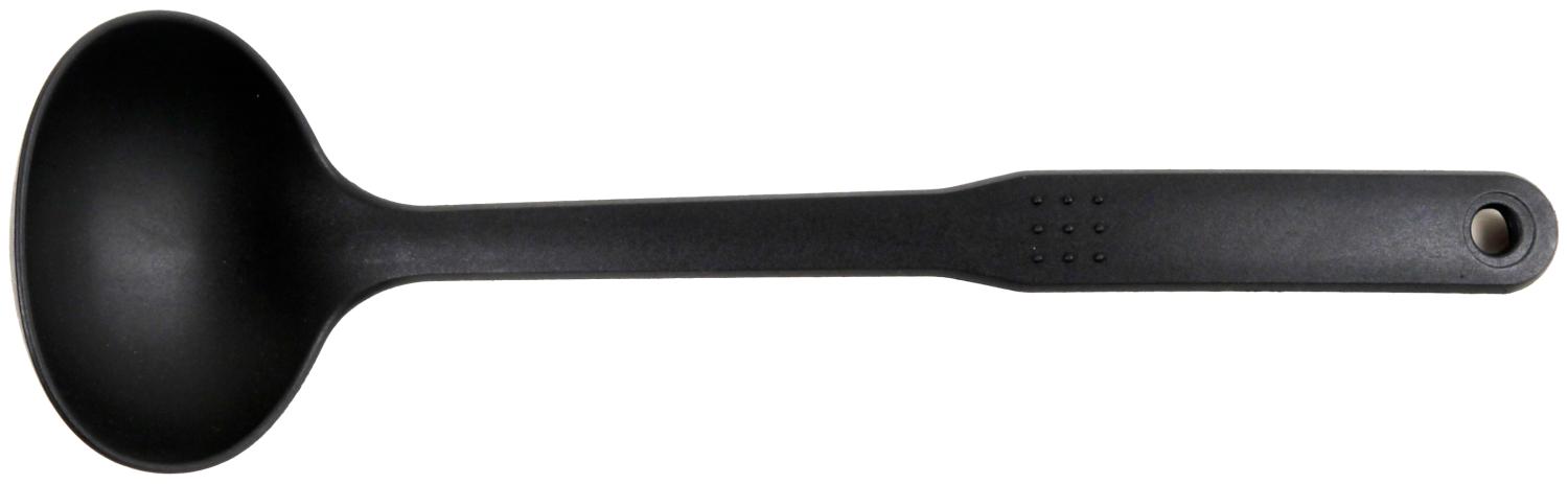 Soppslev som rymmer 1 dl och är tillverkad av BPA-fri nylon plast i svart färg. En soppslev som ingår i en serie där olika redskap finns. Det finns ett praktiskt hål för upphängning.