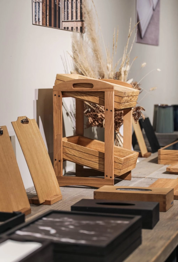 Stapelbar trälåda som är tillverkad av ek och har gastronorm storlek GN 1/2 och finns i olika färger. Trälådorna ingår i en serie där olika träprodukter finns.