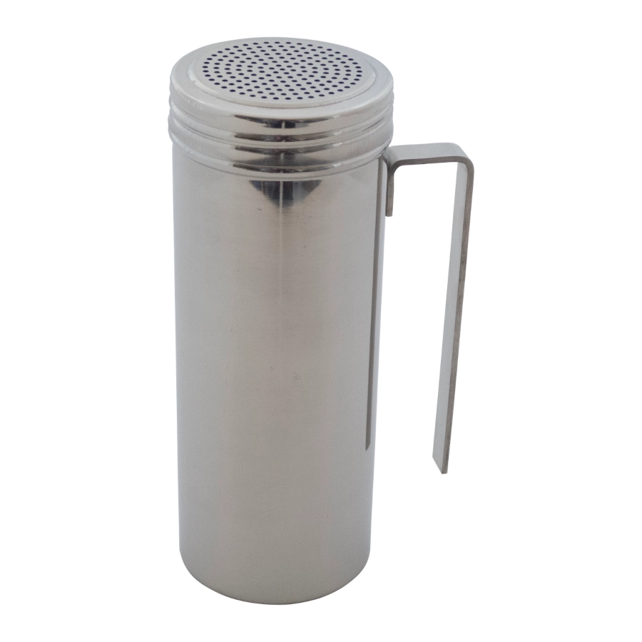 Ströare med hål och handtag i en hög modell som är tillverkad av rostfritt stål vilket gör att det blir en tålig ströare. Det här är även en ströare som passar bra i olika köksmiljöer.