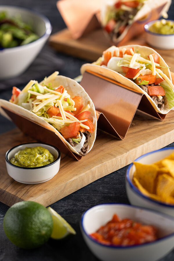 Ett tacoställ och tacohållare som är perfekt för servering av tacos, steam buns, wraps och korv med bröd men även till mycket annat.