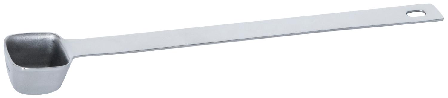 Måttet har ett hål som kan användas vid upphängning av måttet och det är ett teskedsmått som är slittåligt. Ett köksmått som passar lika bra till matlagning som bakning.