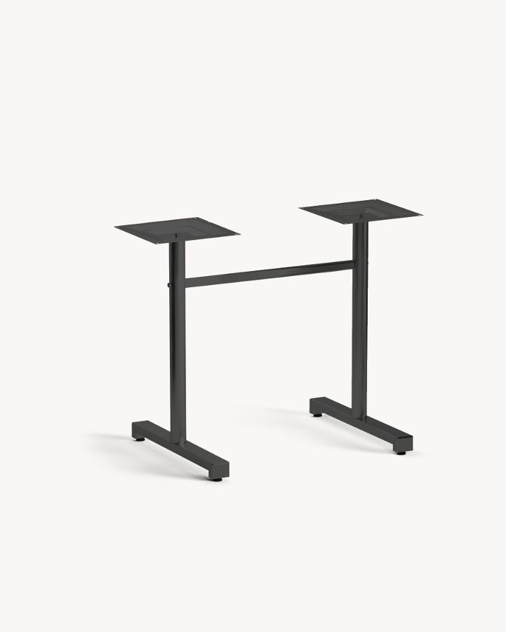 Detta bordsstativ i svart färg har t-ben och som passar utmärkt till en rektangulär bordsskiva. Ett bordsstativ som ihop med en bordsskiva blir ett bra cafebord, restaurangbord och utebord.