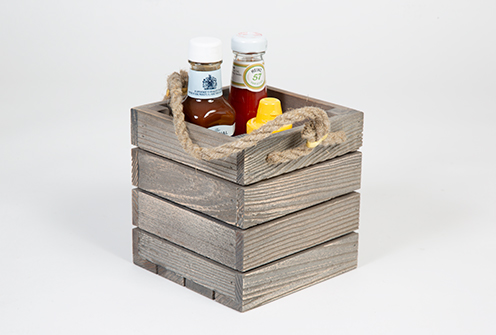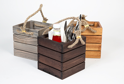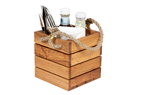 Trälåda med rep som är tillverkad av ek och som finns i olika färger. En trälåda som ingår i en serie där olika träprodukter finns.