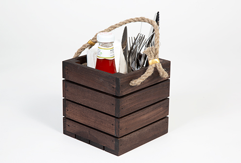 Det går att använda trälådan som besticklåda eller som bordsapotek på det dukade bordet.