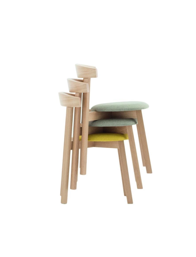 Uxi stol som är tillverkad av bok med klädd sits och som har en tidlös design. Stolen ingår i serien Uxi där det även finns en karmstol och en barstol som kan användas ihop eller var för sig i olika miljöer.