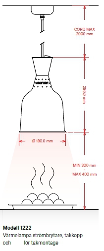 En värmelampa för takmontage och rekommendation för montering är 25-45 cm ovan maten.