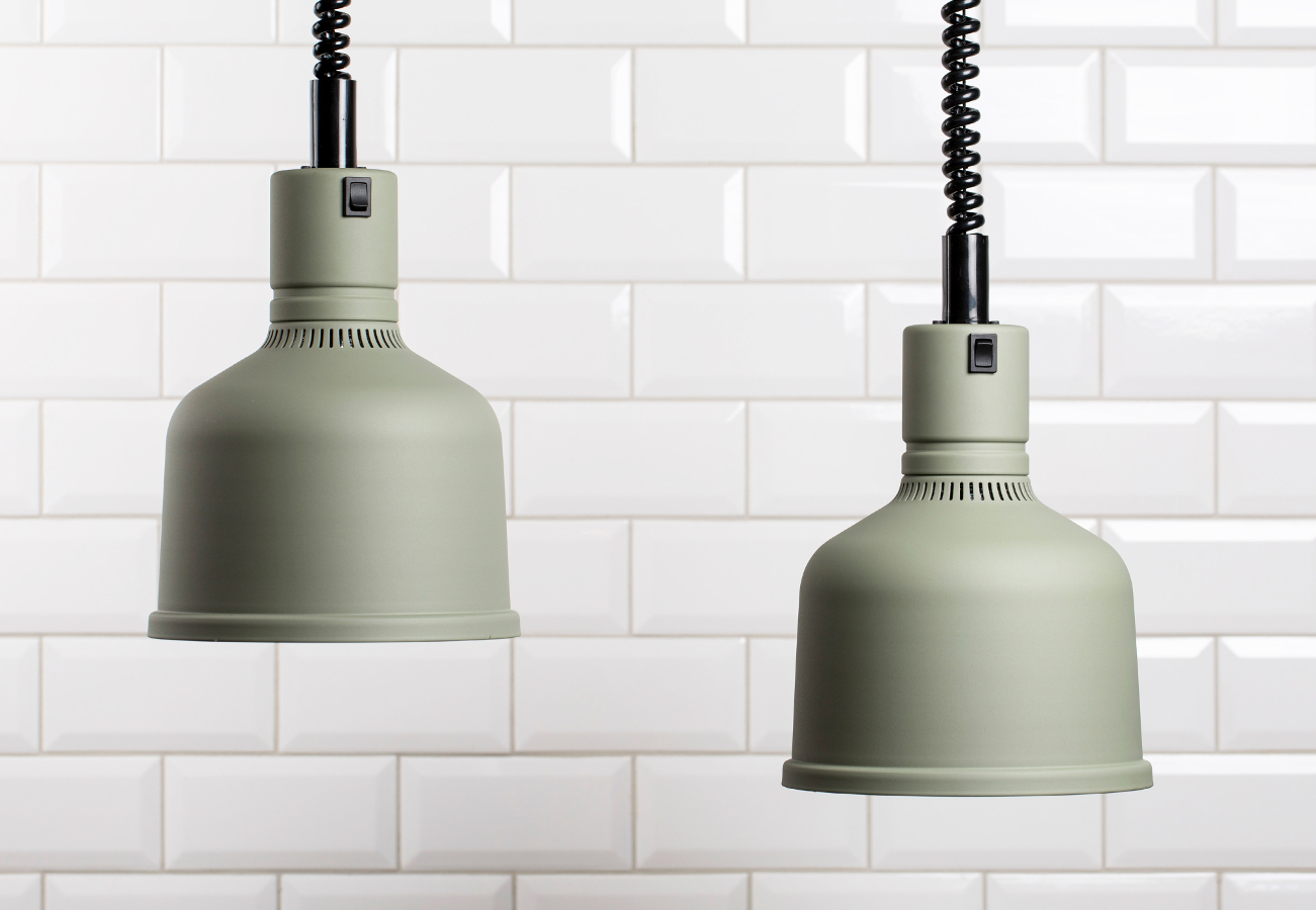 Med denna värmelampa så går det enkelt att justera höjden och man kan värma maten vid behov.