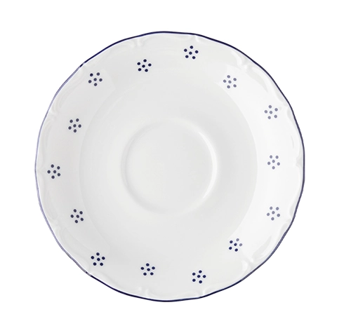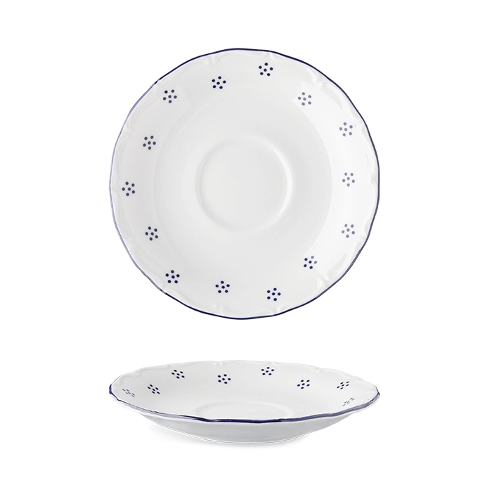 Verona kaffefat med dekoren Valbella. Kaffefat som har en tillhörande kopp och ingår i en serie där flera delar finns.