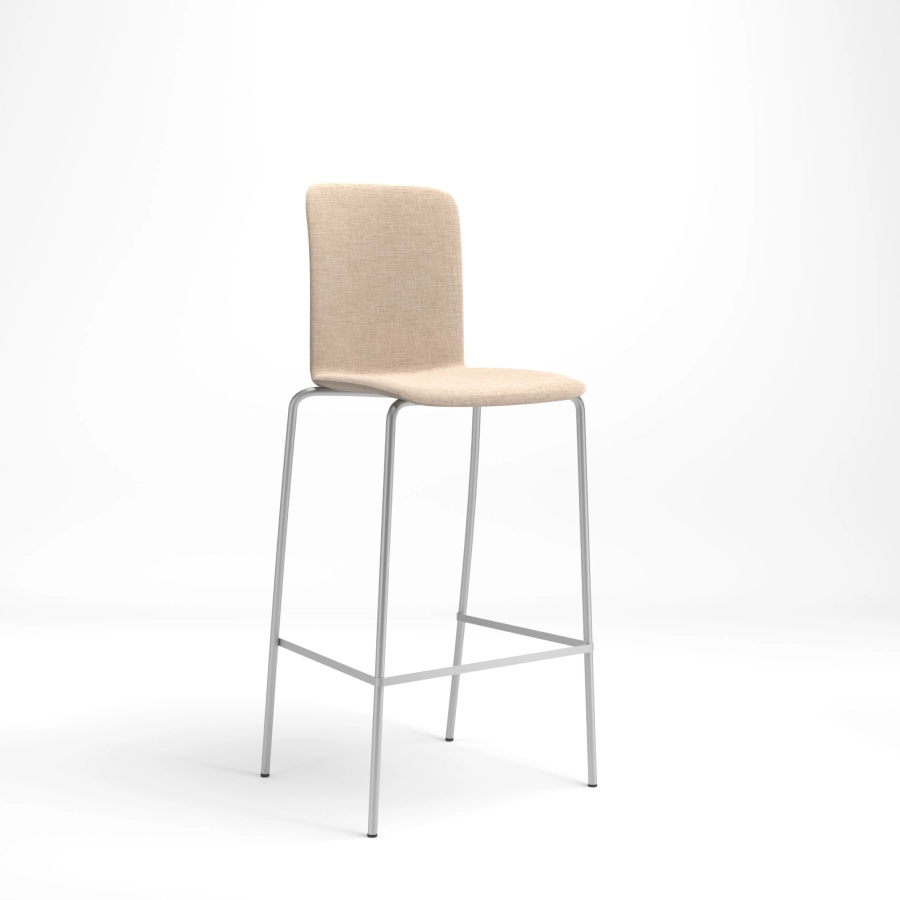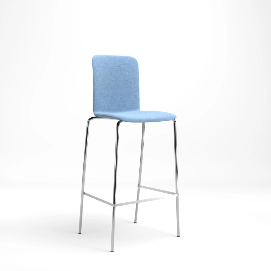 Vivo barstol med 4 ben av stålrör och sittskal är helklädd där flera olika färger och klädselval finns. En barstol som ingår i serien Vivo där stolar och barstolar finns i olika utföranden.