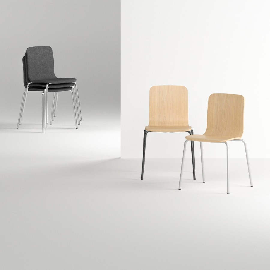 Stol med modern och enkel design som är praktisk då den är stapelbar som gör att man kan förvara flera stolar på liten yta. Stolen passar bra som cafestol och restaurangstol men även som matstol i fikarum och lunchrum.