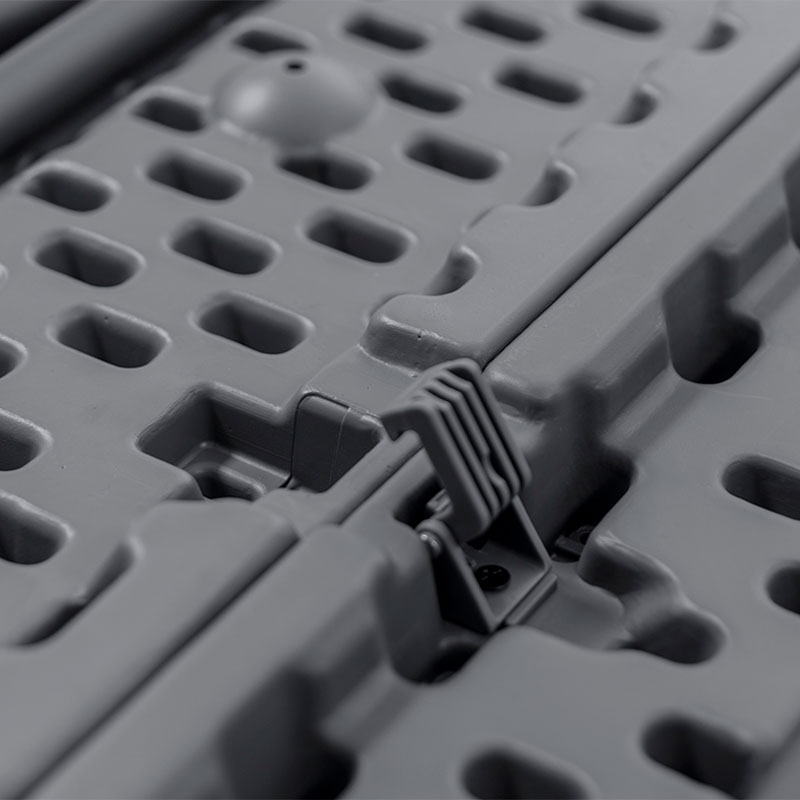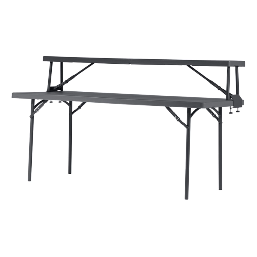 XL fällbord som är rektangulärt med stativ av stål som är pulverlackat med bordsskiva av högdensitetspolyeten med en mörkgrå färg (shark grey). Bord som är en vidareutveckling av Event borden från Zown.