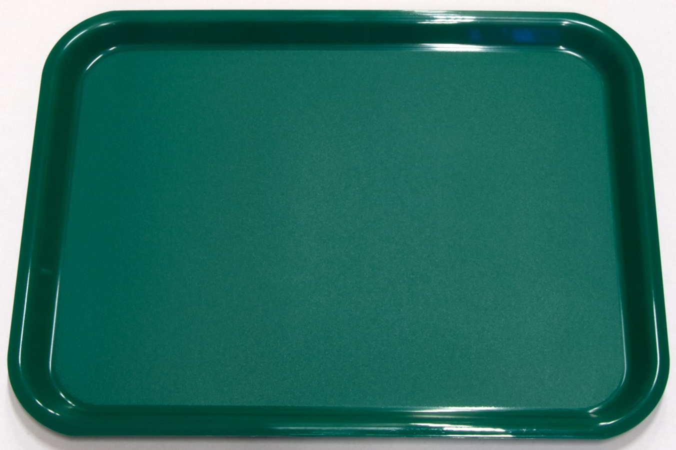 Bricka som är som är svensktillverkad av slagtålig propenplast med grön färg.