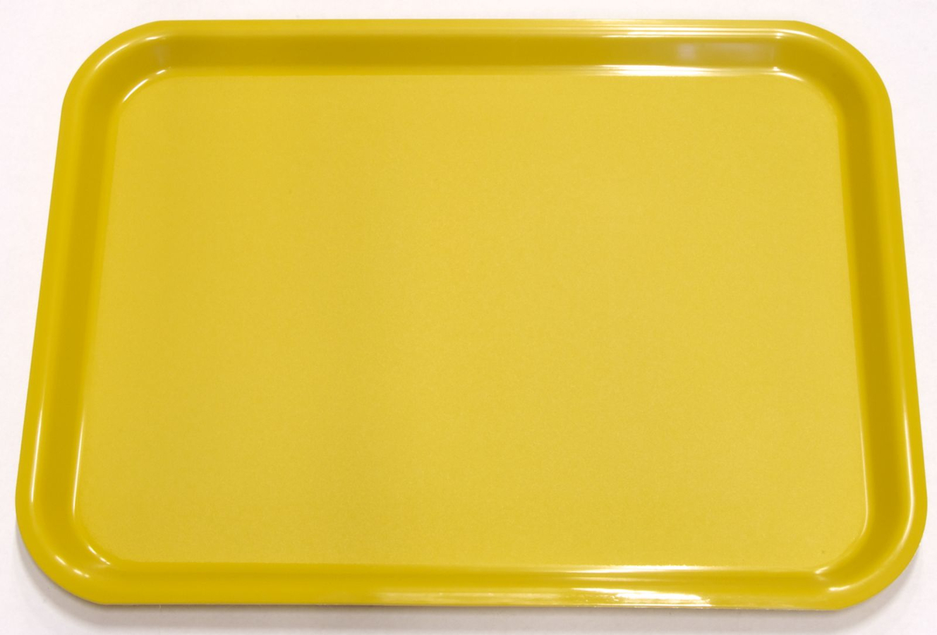 Bricka som är som är svensktillverkad av slagtålig propenplast med gul färg.